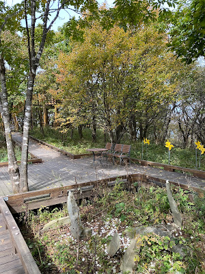 청옥산 산책로 주변에 가을꽃이 피어서 방문자들을 수줍게 반겨주고 있습니다.